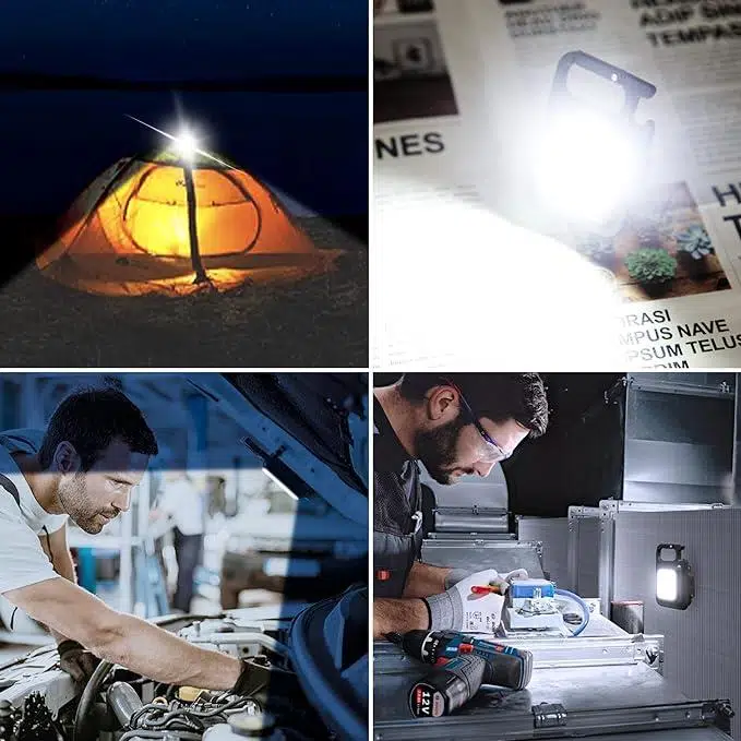 Çok fonksiyonlu COB kontrol lambası: Cep kamp feneri sadece masa lambası ve şişe açacağı olarak değil, ev, araba onarımı, asansör çalışması, kamp, açık havada mangal, avcılık, garaj, macera, endüstriyel, gece balıkçılığı için veya acil kurtarma ekipmanı olarak da kullanılabilir.