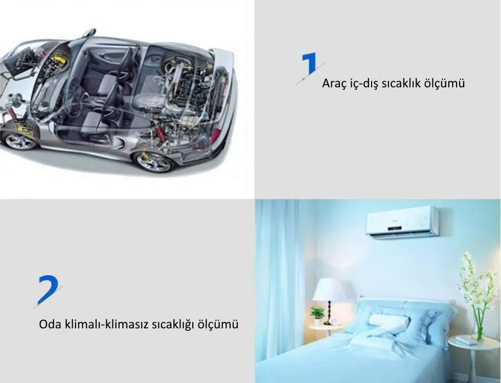 -50°Cile +100°C arasında sıcaklıkları ölçmek için kullanabileceğiniz su geçirmez uca sahip termometredir.